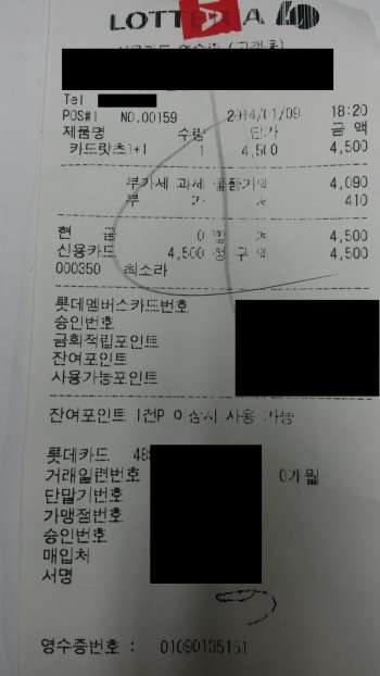 영수증 보시면 아시겠지만 어제 저녁 6시즘 구입한 롯데리아 랏츠버거 입니다.