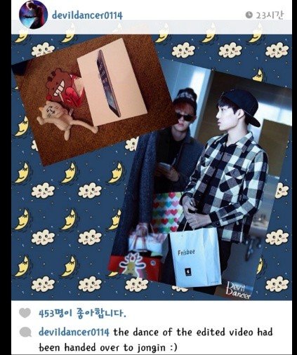 데빌댄서는 종인이 춤춘 동영상 편집해서 아이패드에 넣어줬대 ㅋㅋ