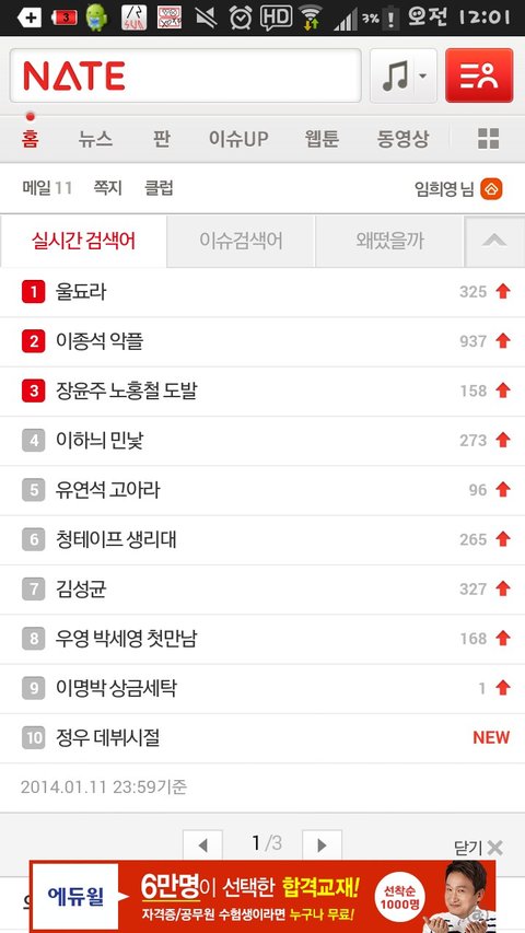 네이트 실검 1위