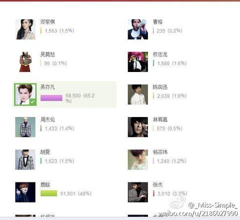 크리스 일위........그것도 중국에서 뜨는 스타들을 다 제치고....루한팬들은 초딩들이 너무 많아서 .......