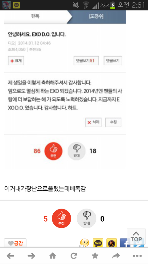 사칭이더라도생일이니깐 ^~^ 생일추카해 경수야 사생때문에항상힘들지 방송에서힘들어도웃고티안내고하는거많이ㅅ힘들거라는거알아 하지만항상옆에잇는팬들과멤버들을위해서힘내줬음좋겟어 이번년도에는항상밝고좋은일만가득일어나는경수가되기를 0♡0 사랑하고생일축하해 ~ 하트.