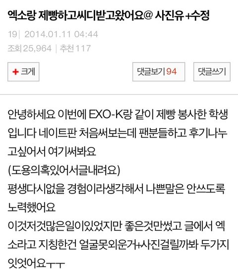엑소랑 같이 제빵봉사한 후기 글주소!