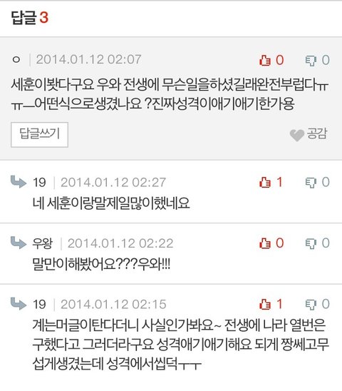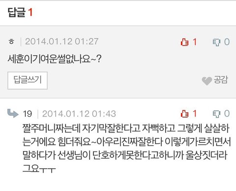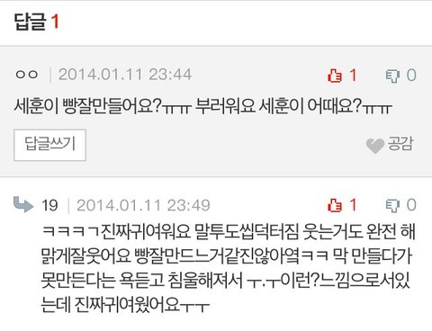 그중에 세훈이 관련댓글 캡처해왔어~