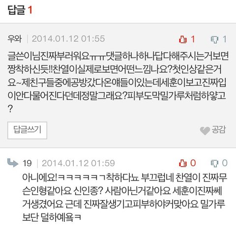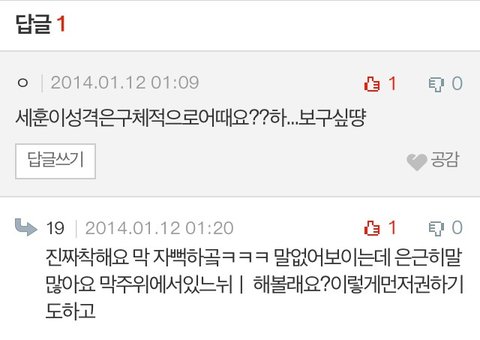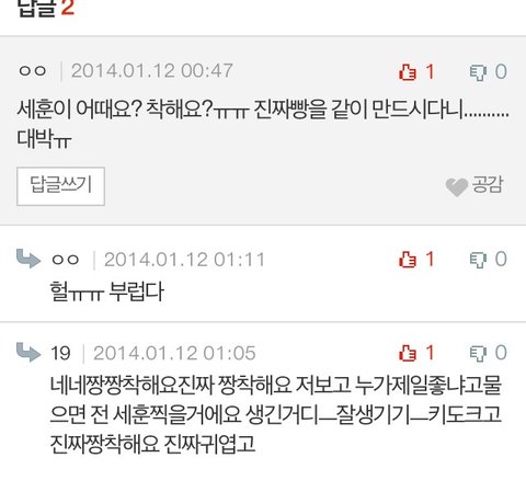답글 달아주신글 보면 세훈이 귀엽고 착하다는