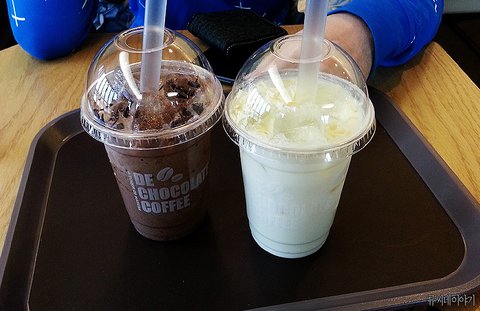 한잔에 6000원이었는데 나는 쓴 초콜릿을 좋아하고 오빠는 단 초콜릿을 좋아해서 이렇게 만들어봄.