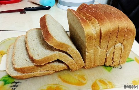 집에 계란은 없고 빵은 먹고 싶어서 만든 통밀 식빵임.