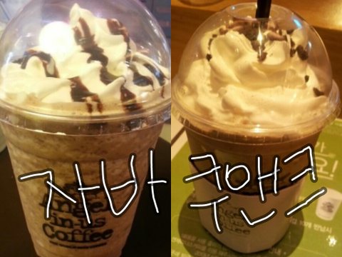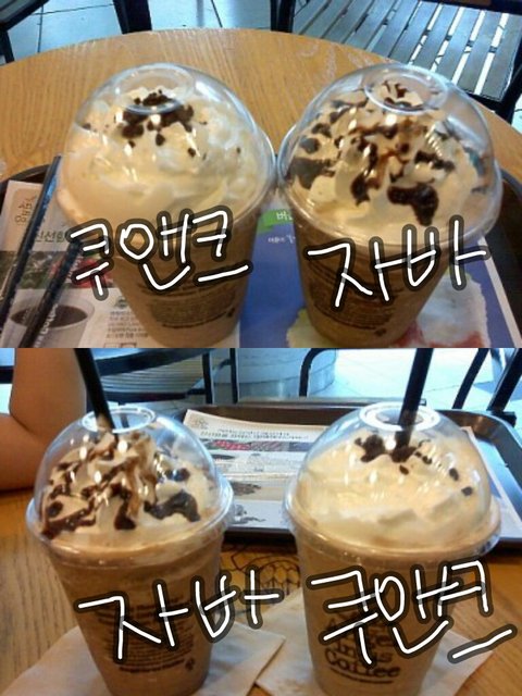 자바초콜렛칩프라페와 쿠키앤크림프라페 잇잖아요!