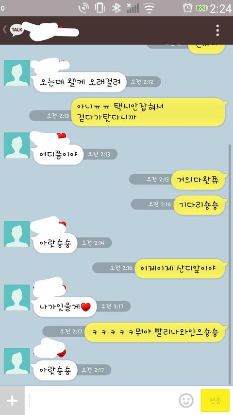 "아 예예ㅋㅋ오빠 나간다 커피마시러오는거지?