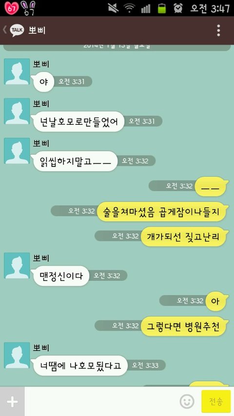 오빠랑 따로살고 가끔 술먹고 개되서 톡으로 시비를 거는 오빠기에