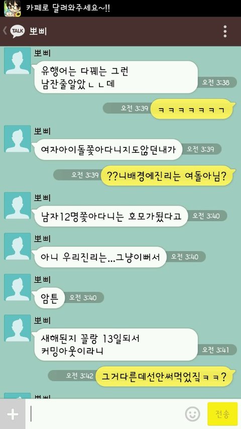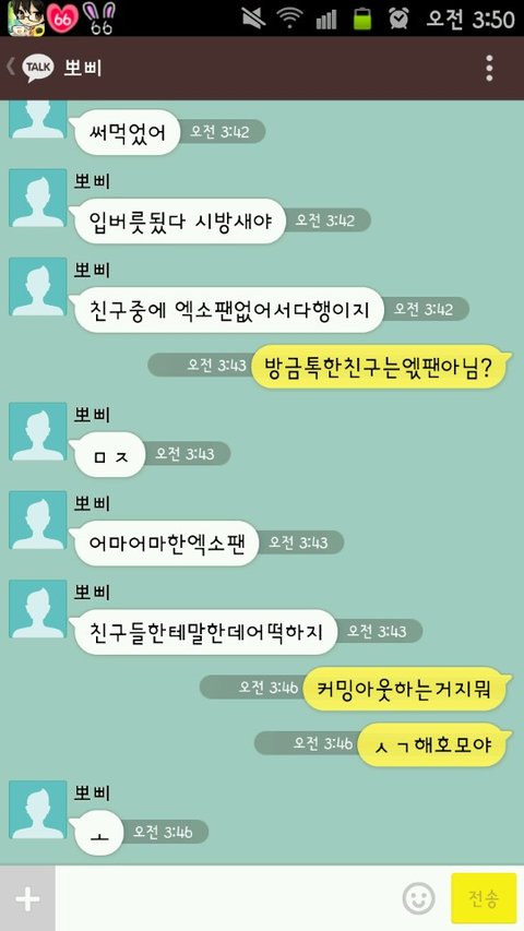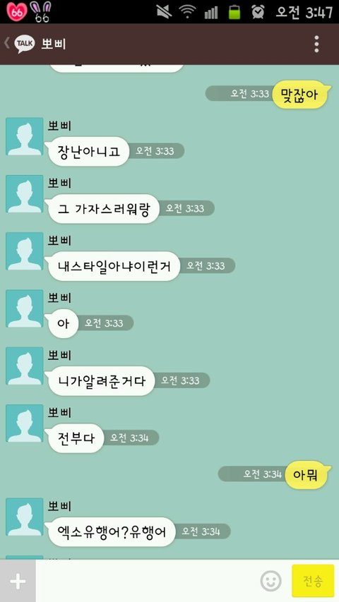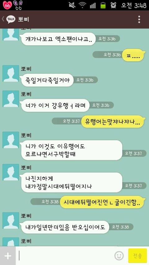 3. 오늘 새벽 엓팬 여사친과 톡하다가 엑소 유행어를 씀