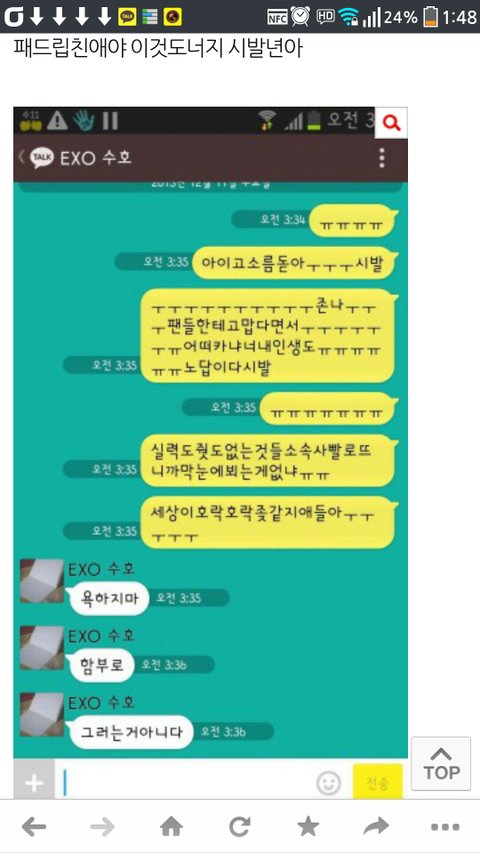 위에 세사진은 사생년들이 허구한날 쳐보내는 카톡들이고