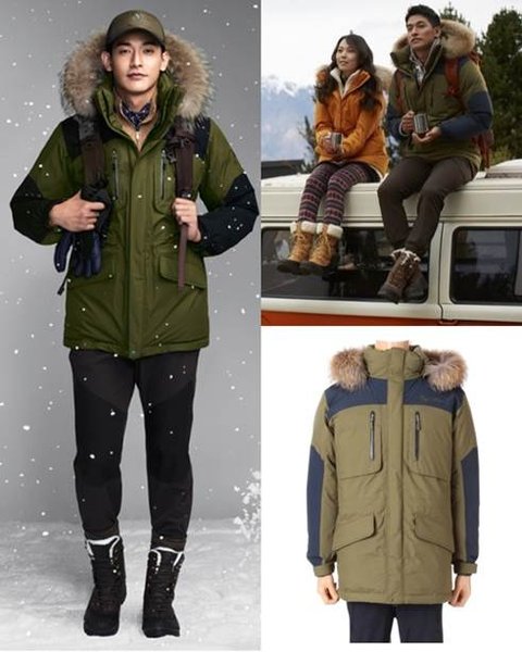 아웃도어 스타일 겨울 훈남 패션의 좋은 예를 보여주었다.