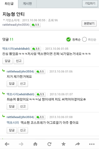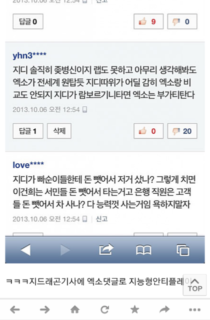 추가 안티팬들의 만행ㅋㅋㅋㅋ톡선에올라온거에요