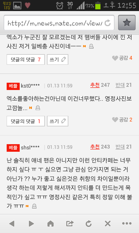 안티들도 자기들 잘못을 알았으면 좋겠네요ㅠㅠ