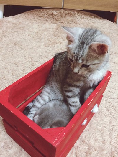 박스에 들어가자마자 냄새를 맡는 탄이
