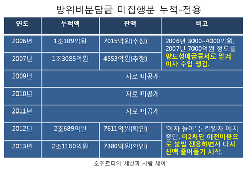 국민 혈세로 제공하는 돈으로 ‘이자 놀이’를 했다는 비난이 일자 주한미군은 2009년부터 2011년까지 분담금 집행내역을 공개하지 않았다. 2012년부터 다시 공개했지만 누적잔액은 크게 줄어있었다. 미2사단 이전 비용으로 전용하고 있기 때문이다.