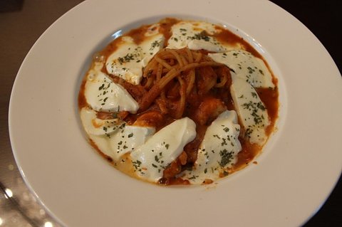 모짜렐라 치즈를 곁들인 토마토소스 파스타