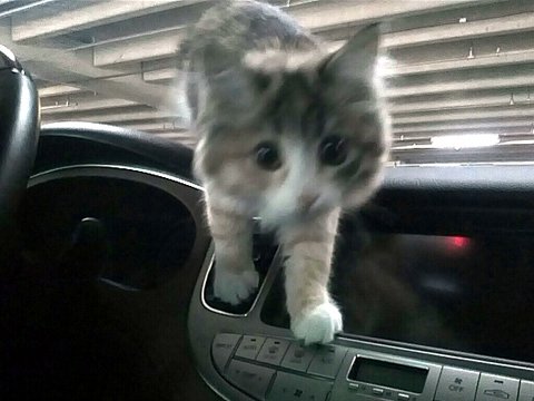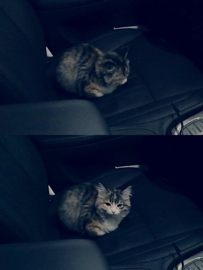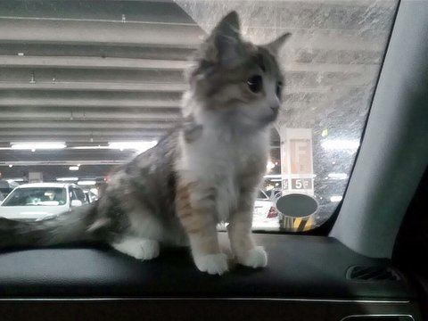 잠시 차 안에서 대기중.....그와중에 차안 구석구석을 열심히 돌아다니는 꽃님.