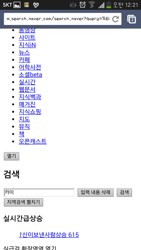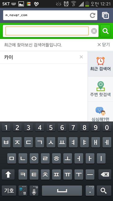 쿠키차단 누르고 검색한다음 다시 쿠키 허용했을때 최근 검색에 카이가 나오지 않았어!!!!