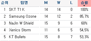 KT 롤스터 불리츠 Vs 나진 화이트 쉴드 (5판 3선승)