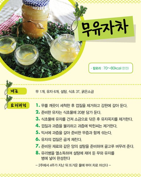우리가 익히 먹던 유자차에 영양분이 살아있는 무즙을 섞어낸~