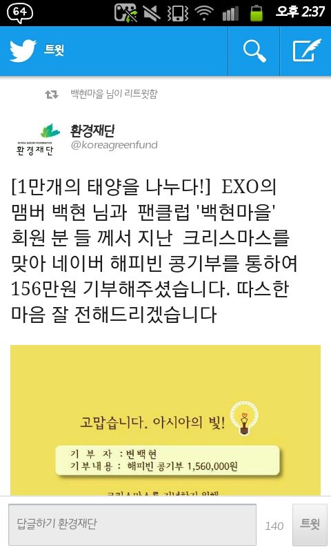 백현이 팬들 또 좋은일 했네