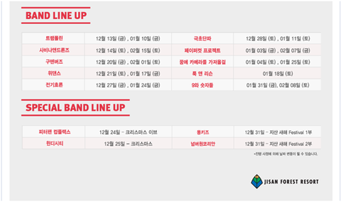 올해 지산 포레스트 리조트에서는 매주 금요일과 토요일, 그리고, 새해에도