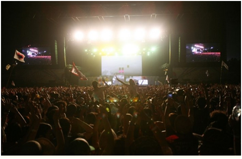 뮤직 페스티벌의 뜨거운 열기 속에서 음악을 즐기며