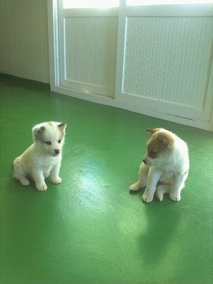시보호소에서 급히 영희와 철수를 함께 데리고 나왔습니다.