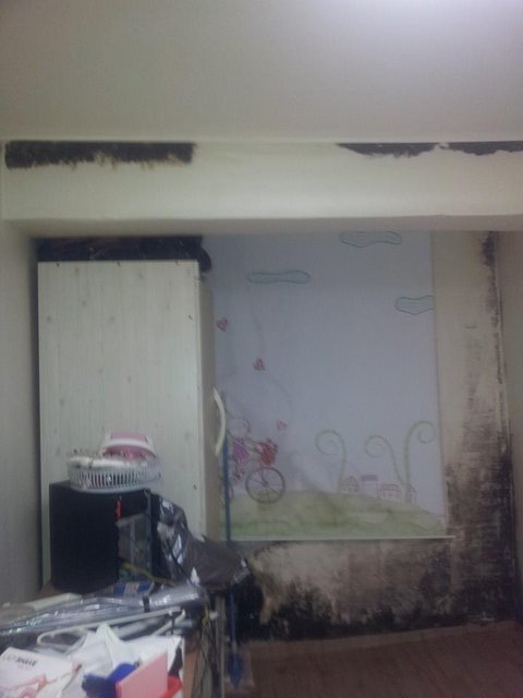 날씨가 추웟다가 다시 날씨풀렸다가 하니까 창문도 얼고 다시녹고 해서 창문밑에 물고이고... 그게 반복되다보니까 지금 벽지상태가...