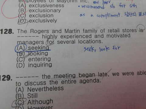look뒤에 바로 for이 붙어서 와야 답이되는건가요?
