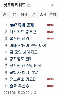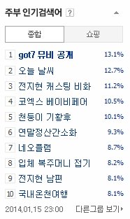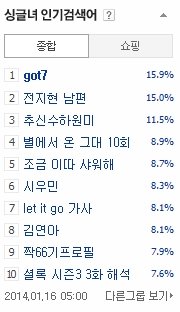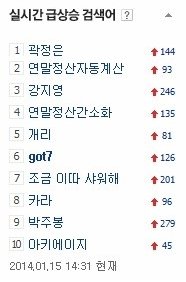 <2014년 1월 15일 수요일 갓세븐 관련 검색어>