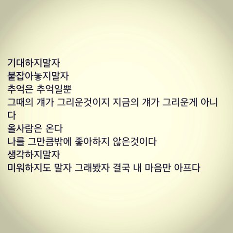 내가 잘했던 못했던 헤어질 운이였던거 같아요 헤어지고 나서 내가 좀더 잘했으면 좀더 참았으면 안 헤어지지 않았을까 하는 생각도 해봤는데 시간 지나보니 좀더 만났을수는 있겠지만 결국 헤어졌을거라는 생각이 들더라구요 이별을받아들이는게 참 어렵고 힘들던데 그걸하고나니 맘도 한결 편안해지고 놓아지는거 같더라구여