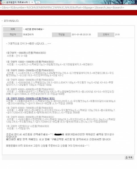 너무 황당하여 업체에 사은품 누락 및 적립금 미통보 임의적립에 대한 문의를 하려고 전화하였더니 업체측에서는 실수였다며 무조건 이해 해달라는 식으로 말씀을 하시더군요..