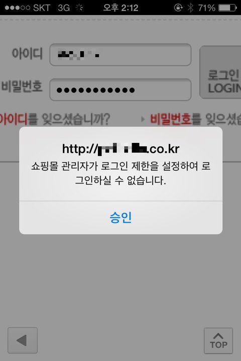 그리고나서 정말.. 더 어이없는건.. 혹시나해서 2800원 적립금에 대한 공지가 어디있는지 확인해보려고 다시 쇼핑몰 사이트에 들어가니까 제 핸드폰 데이터 ip, 저희집 네트워크 ip 전부 차단시켜버려서 사이트 접근자체가 안되더라구요?ㅡㅡ; 그래서 동생폰 데이터 ip로 사이트 들어가서 로그인 하려고보니 제 쇼핑몰 id까지 로그인 제한을 시켜버렸더군요;; 정말 이런일은 처음 겪어보는일이라 당황스럽기만하네요;;.. 이게 도대체 무슨일인지..