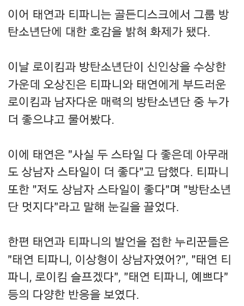 티파니, 태연 방탄에 호감드러내