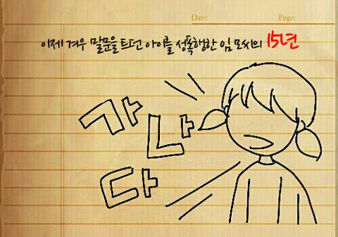 국내 아동학대 혐의 인정 사례라고 함.... 우린 예전에도 저런거 있었지..칠판에 이름 적어놓는거...더구나 저렇게 친근감 있게 캐릭터...