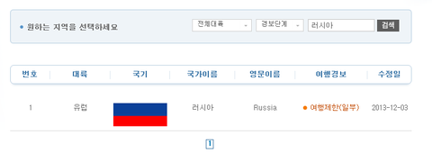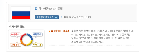 외교부 해외안전여행 홈페이지에서 러시아를 검색해보았더니,