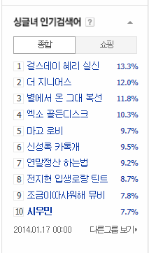 140117 12시 시우민 싱글녀 인기 검색어