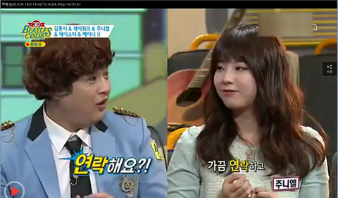 주니엘은 찬열오빠랑 동창이 아니고요. 카이씨랑 동창이에요.라고 말했습니다.
