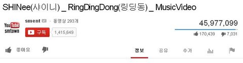 샤이니 링딩동 유투브 조횟수 4500만 넘었네 ㄷㄷㄷㄷ