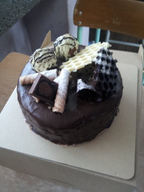 생크림 바르고 겹겹히 초코생크림을 샌드하고 가나슈를 코팅하고 장식해 주었어요!
