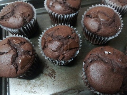 청크 초코칩이랑 다크커버춰 초콜릿 잔득넣어서 만든 초코머핀이에요! 제가 초코덕후라