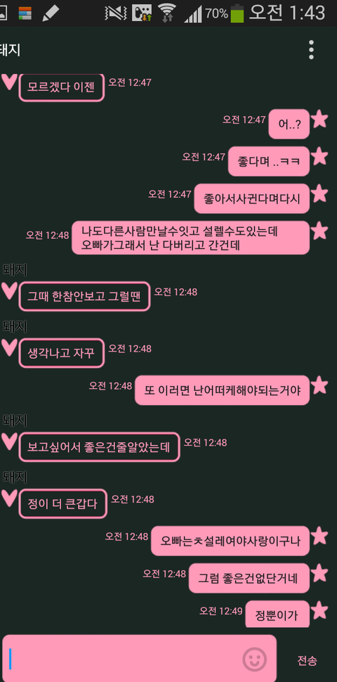 차여서 매달리다가 매정하게돌아선남자때믄에 이주정더힘들허하다가 잊어갈때쯤 연락와서 흔들더니 한달만에다시만낫고 다시만난지 일주일만에 또 이렇게됫네요 잘지내다가...갑자기왜저러는건지..하 또매달랴서 잡히긴햇는데 ..껍데기만들고있는건가요