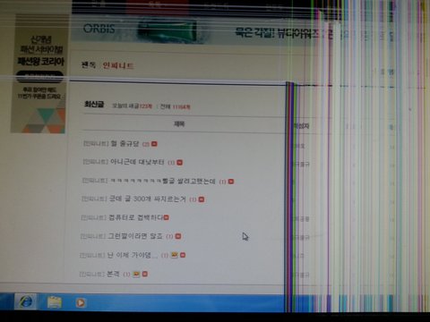 컴퓨터 상태가 이래;;;;동생이 컴퓨터에다 뭐 던져야지고;; 닉넴은 자동 모자이크 처리