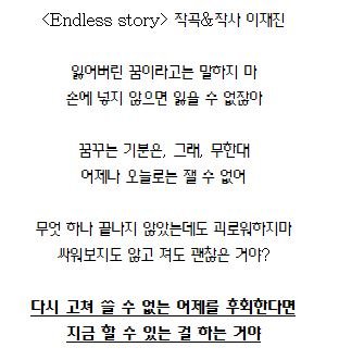 지금부터 보여드릴 '자작곡'과 밴드 음악에대한 의견을 들어보려고 합니다. (전곡 가사를 첨부하기엔 길어질듯해 부분만 첨부했습니다.)
