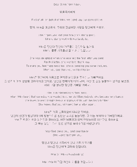 밑에사진은 방글라데시에서 후원받는아이인 mim의 보호자로부터 온편지같은데 어떤 블로그에서 본거래요.