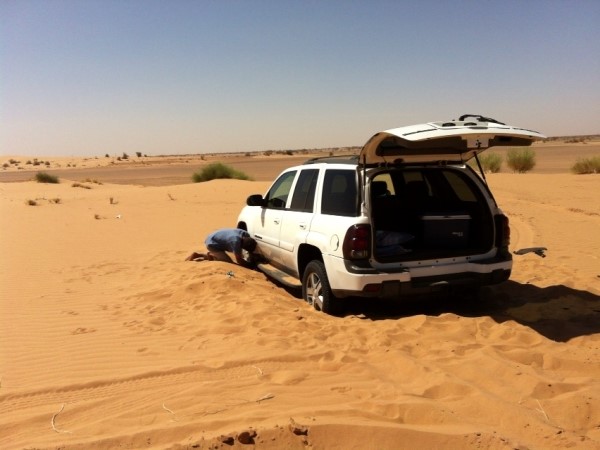 아무튼 한시간 반 정도를 달리고나자 갑자기 이브라힘은 고속도로에서 대뜸 오프로드로 빠졌다. 갑자기 사막위를 덜컹덜컹 달리기 시작하더니 길 위에 나있는 타이어 자국을 따라가기 시작했다. 저 타이어 자국이 아마 마지막으로 친구들이랑 캠핑 왔을 때 왔었던 흔적일거라고. 한참을 꼬불꼬불 대체 어떻게 찾았는지도 모르겠는 길을 달리고 또 달렸다.