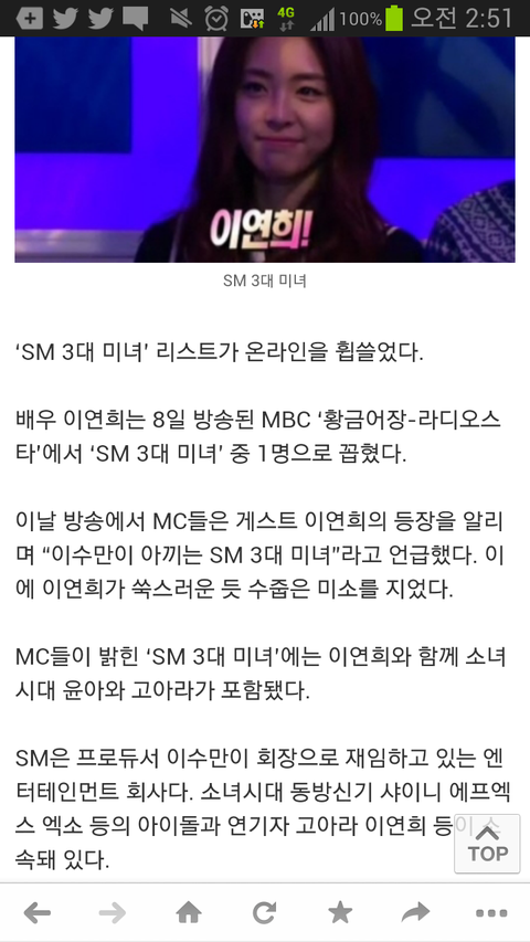 Sm삼대미녀 기사에등장한 엑소