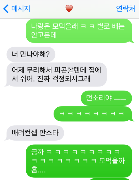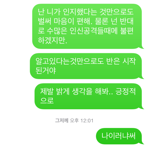한참동안 말이 없다가, 문자가 왔네요.